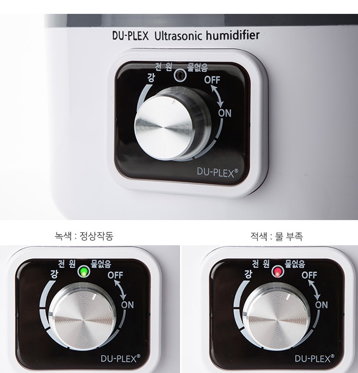 [가습] 물탱크용량: 4.0L / 최대분무량: 300cc / 연속가습시간: 16시간 / 분무구: 2개 / [편의] 간편세척 / 360도회전 / 상부급수식 / 물없음알림 / [부가] 다이얼식조작부 / [기타] 소비전력: 35W / LED표시등